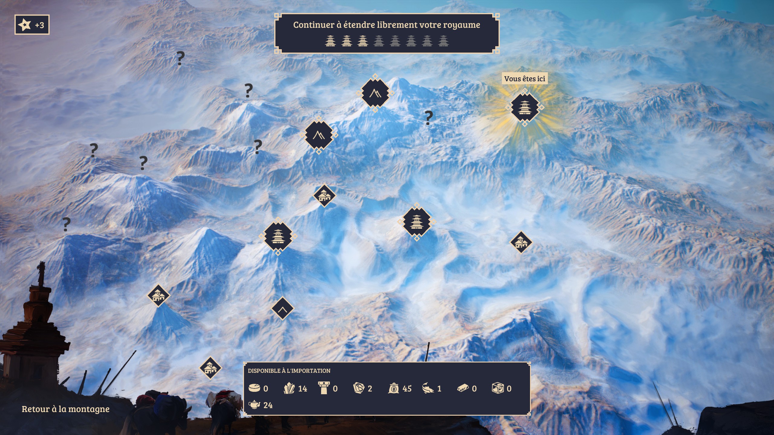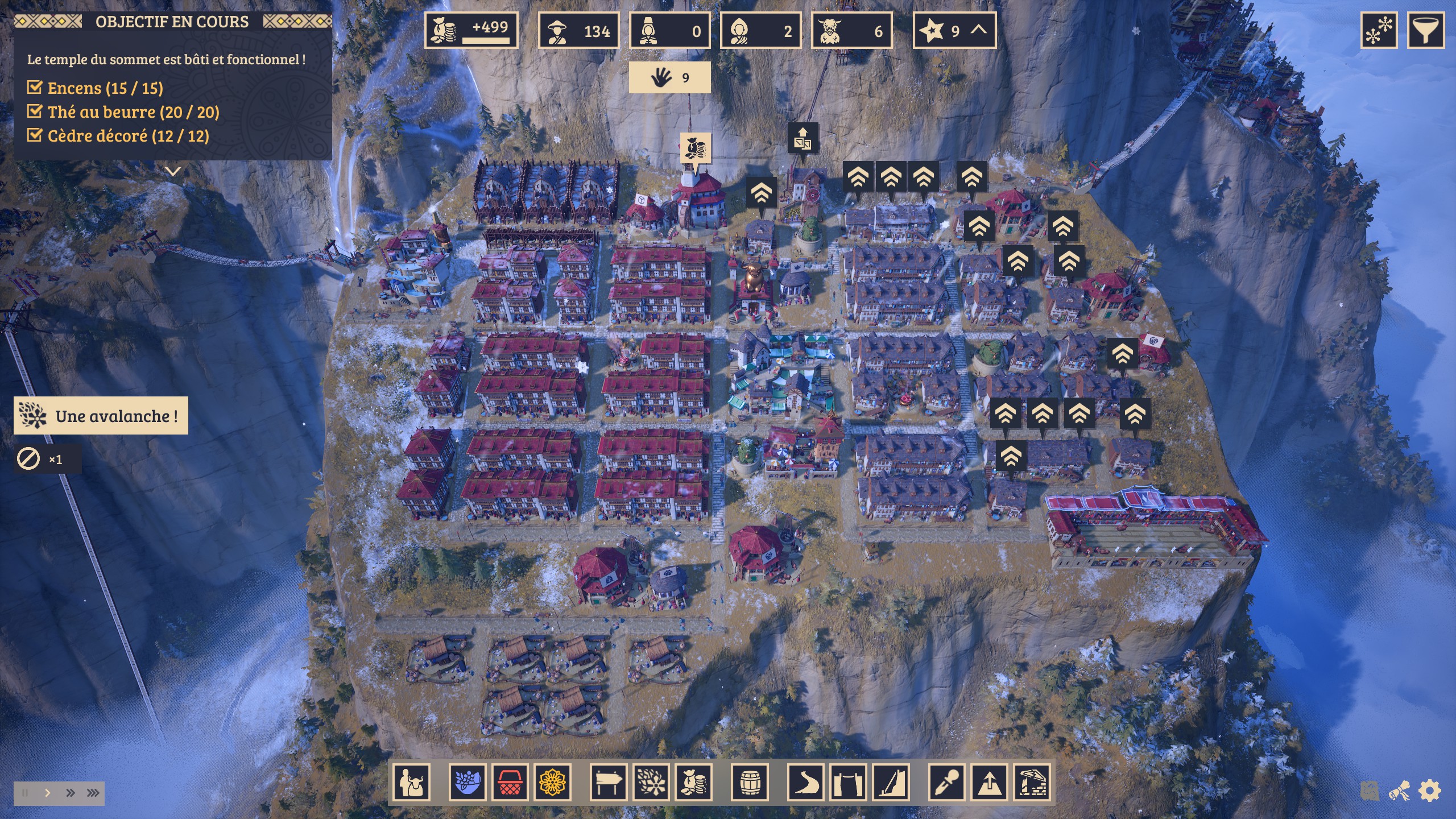 Vous le voyez, l’équilibre dont je vous parlais plus tôt ? Laysara: Summit Kingdom est un ajustement permanent entre croissance de population, mise en place de productions et déplacement de bâtiments pour optimiser la circulation des biens.