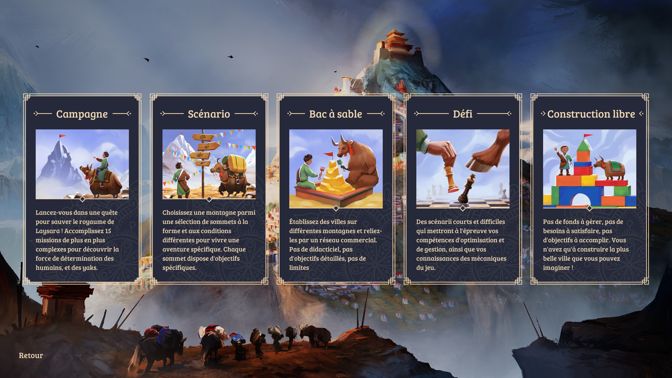 Sur le plan technique, Laysara: Summit Kingdom est impeccable. Je n’ai pas rencontré un bug en 15h de jeu, durée qu’il m’a fallu pour arriver au bout de la campagne et quelques pinaillages. Si vous en voulez un peu plus, le jeu vous offre différents modes de jeux, avec des scénarios, des cartes bac à sable, des défis et même un mode créatif, pour profiter de la beauté de la montagne.